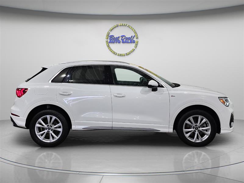 The 2023 Audi Q3 quattro S line Premium 45 is a stylish and compact luxury SUV powered by a 2.0L turbocharged engine delivering 228 hp. With Audi’s legendary quattro all-wheel drive, it offers confident handling in all conditions. The S line trim adds sporty design elements, while the Premium package ensures a refined interior with advanced tech features like a digital cockpit, MMI touchscreen, and driver assistance systems. Ideal for urban driving or weekend getaways, the Q3 blends performance, comfort, and versatility in a premium package. Stop in or give us a call 260-483-7999