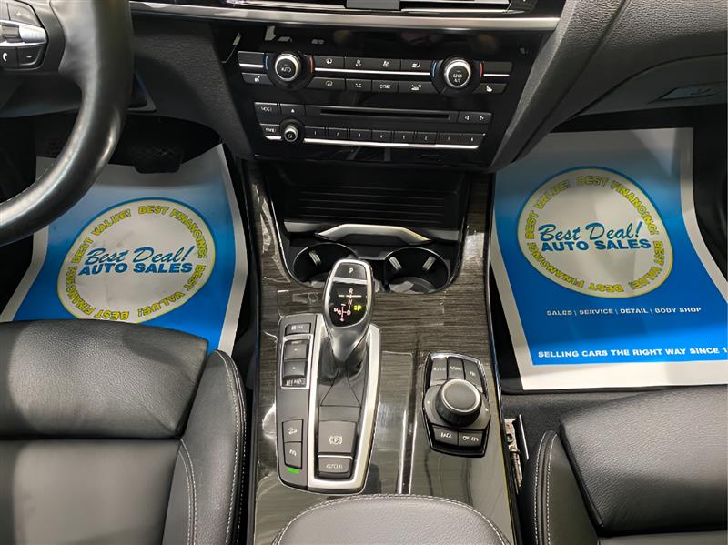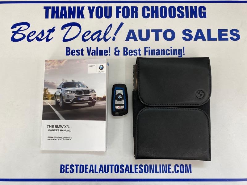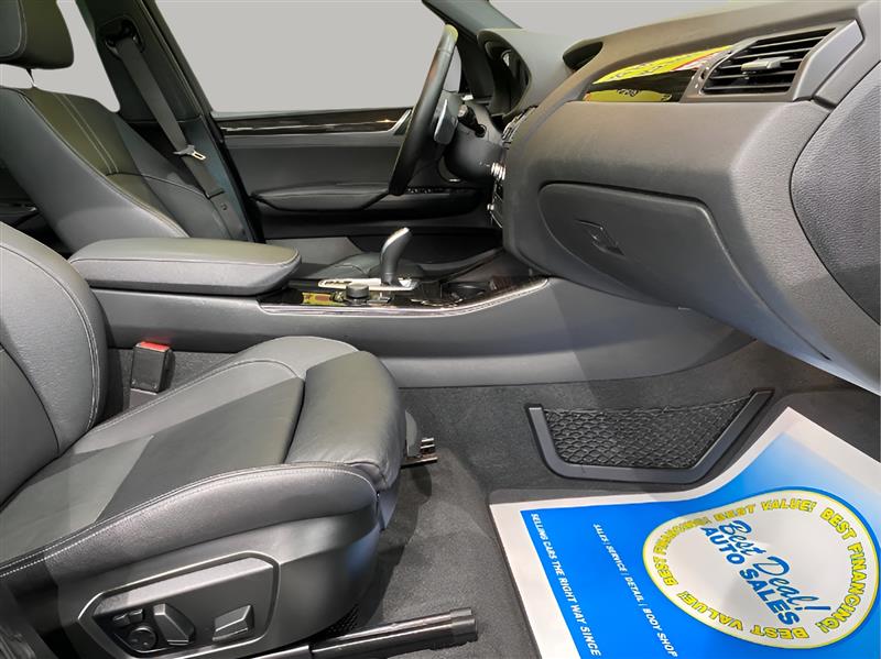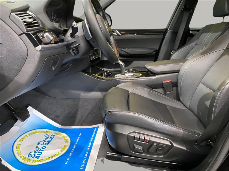 Step into the epitome of luxury and performance with the 2017 BMW X3 xDrive35i. This stunning SUV is powered by a formidable 3.0L Turbo I6 engine, delivering an impressive 300hp and 300 ft. lbs. of torque. In Black Sapphire Metallic on the outside and a sleek Black interior, this X3 exudes elegance from every angle. As you slide behind the wheel, you'll be greeted by a host of factory default features that elevate your driving experience to new heights. Luxurious leather upholstery, a panoramic sunroof, and power-adjustable heated front seats ensure comfort on every journey. Stay connected and entertained with the iDrive infotainment system, complete with navigation, Bluetooth connectivity, and a premium sound system. Safety is paramount in the X3 xDrive35i, with features such as adaptive cruise control, lane departure warning, and a surround-view camera system providing peace of mind on the road. This vehicle boasts an excellent overall condition, a testament to its meticulous care and maintenance. With a fuel efficiency of 19 MPG in the city and 26 MPG on the highway, the 2017 BMW X3 xDrive35i strikes the perfect balance between power and efficiency. Don't just drive, command the road in this exceptional SUV.