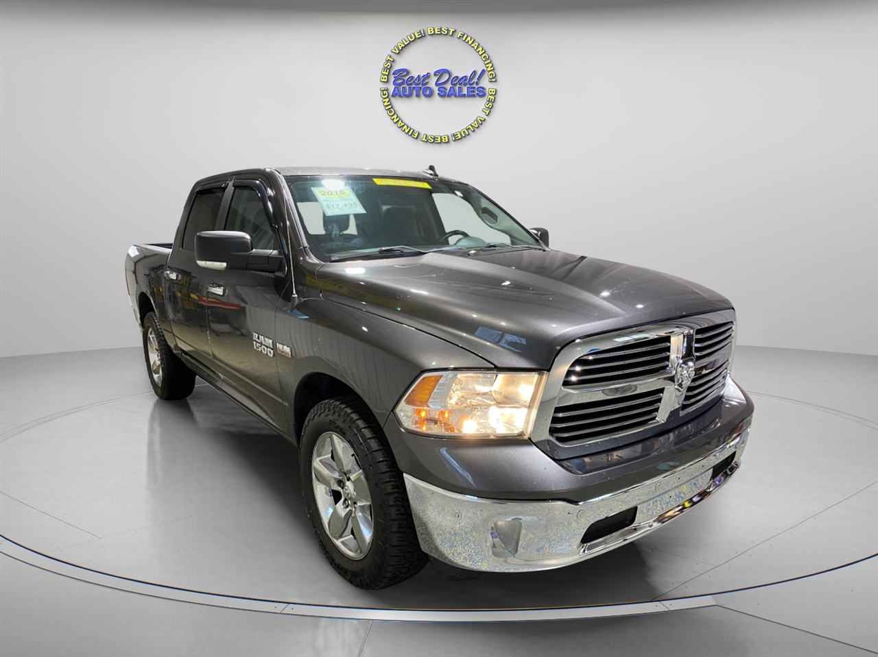 THIS 2016 RAM 1500 BIG HORN IS A DURABLE AND RELIABLE FULL-SIZE PICKUP TRUCK PERFECT FOR WORK OR LEISURE. IT FEATURES A POWERFUL V8 ENGINE, SPACIOUS INTERIOR WITH COMFORTABLE SEATING, AND MODERN AMENITIES INCLUDING A TOUCHSCREEN INFOTAINMENT SYSTEM, BLUETOOTH CONNECTIVITY, AND A BACKUP CAMERA. THE TRUCK IS EQUIPPED WITH A STURDY BED, TOWING CAPABILITIES, AND AN OVERALL RUGGED DESIGN THAT HANDLES TOUGH JOBS WITH EASE. IT IS IN EXCELLENT CONDITION, THIS RAM 1500 BIG HORN OFFERS GREAT VALUE, PERFORMANCE, AND VERSATILITY FOR ANY DRIVER.