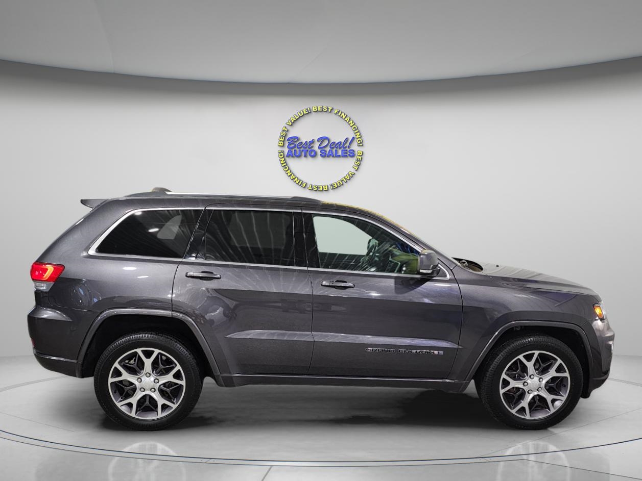 The 2018 Jeep Grand Cherokee Sterling Edition, equipped with a 3.6L V6 engine and 4WD for confident all-weather performance. Celebrating Jeep’s 75th anniversary, the Sterling Edition features premium leather seating, heated front and rear seats, a panoramic sunroof, and an 8.4-inch touchscreen with navigation, Apple CarPlay, and Android Auto. Distinctive exterior accents, 20-inch wheels, and advanced safety features like blind-spot monitoring and rear cross-path detection elevate the experience. Combining luxury, technology, and rugged capability, this Grand Cherokee delivers comfort and confidence on every drive. Stop in or give us a call (260) 357-0099