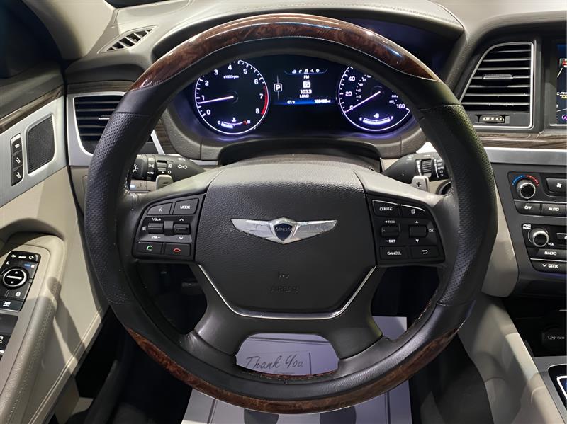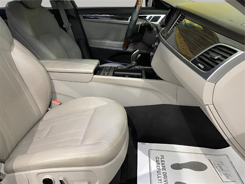 Introducing the 2016 Hyundai Genesis 3.8L, a remarkable blend of luxury, performance, and advanced technology. This stunning sedan is powered by a robust 3.8L V6 engine, delivering an impressive 311 horsepower and 293 lb-ft of torque, ensuring a dynamic driving experience that is both exhilarating and refined. The exterior of this Genesis is elegantly finished in a striking Caspian Black, exuding sophistication and presence on the road. The sleek lines and bold stance are complemented by features such as LED headlights, a panoramic sunroof, and 18-inch alloy wheels, creating a striking first impression. Step inside to find a meticulously crafted interior that combines comfort and style. The cabin is adorned in rich black leather, showcasing Hyundai's commitment to quality and luxury. The spacious seating offers ample legroom for both front and rear passengers, ensuring everyone enjoys the ride. The Genesis also features heated and ventilated front seats, a power-adjustable driver's seat, and a heated steering wheel, enhancing comfort regardless of the weather. In terms of technology, the Genesis is equipped with a state-of-the-art infotainment system that includes a 9.2-inch touchscreen display, navigation, and a premium 17-speaker Lexicon audio system, delivering a concert-like experience. Bluetooth connectivity and USB ports allow for seamless integration of your devices, while features like Apple CarPlay and Android Auto ensure you stay connected on the go. Safety is a top priority in the Genesis, which comes with an array of advanced safety features, including adaptive cruise control, lane departure warning, blind-spot monitoring, and a rearview camera, providing peace of mind for you and your passengers. With an EPA rating of 18 MPG in the city and 29 MPG on the highway, the Genesis balances performance with efficiency, making it an ideal choice for both daily commutes and long-distance travel.