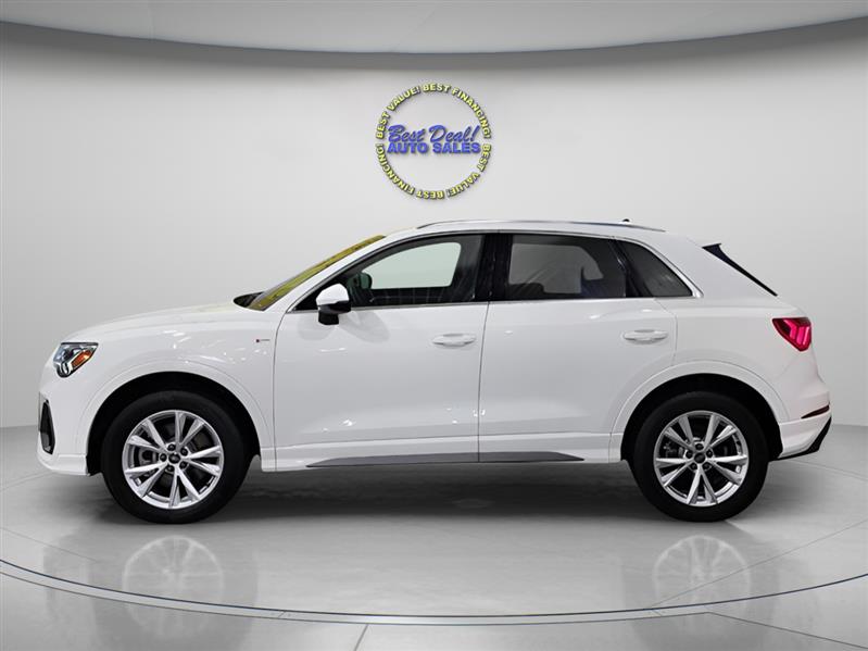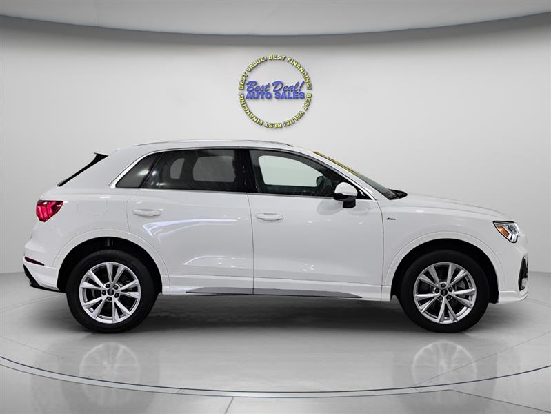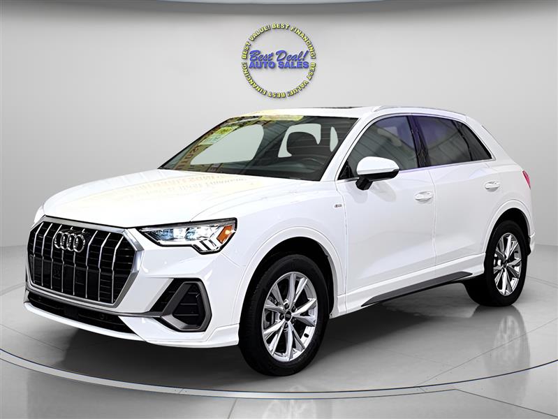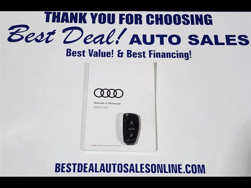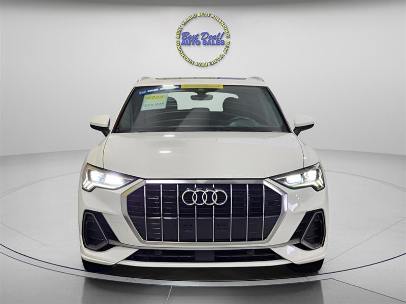 The 2023 Audi Q3 quattro S line Premium 45 is a stylish and compact luxury SUV powered by a 2.0L turbocharged engine delivering 228 hp. With Audi’s legendary quattro all-wheel drive, it offers confident handling in all conditions. The S line trim adds sporty design elements, while the Premium package ensures a refined interior with advanced tech features like a digital cockpit, MMI touchscreen, and driver assistance systems. Ideal for urban driving or weekend getaways, the Q3 blends performance, comfort, and versatility in a premium package. Stop in or give us a call 260-482-8899
